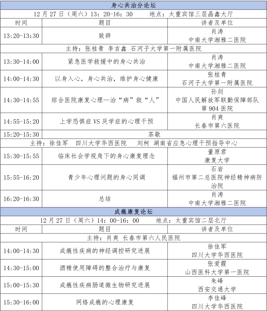 为促进康复心理学事业的发展,进一步推进身心康复新理念、新知识、新技术的传播与规范,提高康复心理人员的专业水平及服务能力,康复心理学人才培养体系建设能力,助力推进健康中国战略。根据中国康复医学会2025年度学术活动计划,定于2025年12月27日在山西省太原市举办中国康复医学会康复心理学专业委员会学术年会(项目编号:XSHD2025-120)。