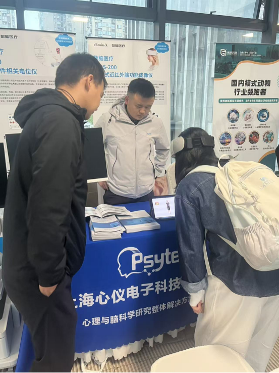 作为国内心理与脑科学领域的专业解决方案提供商,上海心仪电子科技有限公司(以下简称“心仪科技”)在此次大会上展出了两款医疗设备,包括NIRS-200便携式近红外脑功能成像仪和BS-810医用事件相关电位仪等。吸引了与会专家前来体验与交流,成为本次大会的一大亮点。