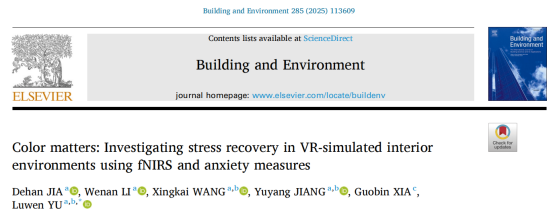 DOI: Jia, D., Li, W., Wang, X., Jiang, Y., Yu, L., & Xia, G. (2025). Color matters: Investigating stress recovery in VR - simulated interior environments using fNIRS and anxiety measures. Building and Environment, 285, 113609.