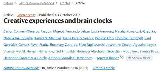 Citation: Coronel-Oliveros, C., Migeot, J., Lehue, F. et al. Creative experiences and brain clocks. Nat Commun 16, 8336 (2025). https://doi.org/10.1038/s41467-025-64173-9