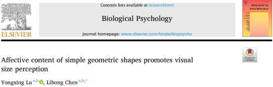 Lu, Y., & Chen, L. (2025). Affective content of simple geometric shapes promotes visual size perception. Biological Psychology, 195, 109006.