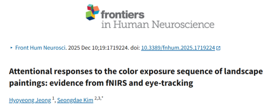 引用:Jeong, H., & Kim, S. (2025). Attentional responses to the color exposure sequence of landscape paintings: evidence from fNIRS and eye-tracking. Frontiers in Human Neuroscience, 19, 1719224.