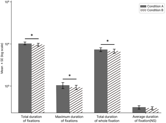 图5 眼动注视时长指标对比(条件A:灰→彩)