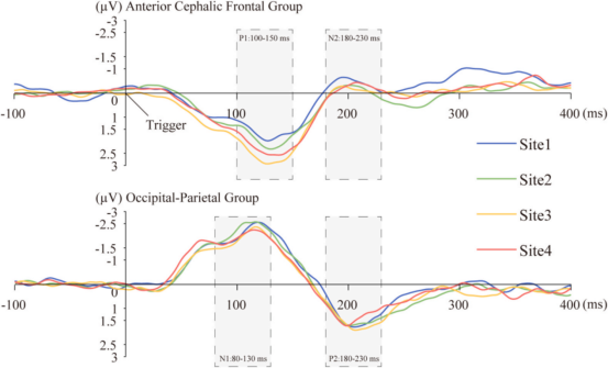 进一步分析发现,不同空间位置还引发了差异化的后期认知加工模式。右上区域(Site 1)诱发的N2波幅(180–230 ms)最大,提示该位置可能需要更强的认知控制或冲突监控,信息处理负担相对更重;而右下区域(Site 4)则表现出独特的时序特征——其N2潜伏期最长,但P2潜伏期最短,暗示大脑对该区域刺激的感知与评估可能存在特殊的神经动力学机制。综合ERP波幅、潜伏期及行为趋势,四个位置的注意优先级排序为:Site 3(左下) > Site 4(右下) > Site 2(左上) > Site 1(右上)。值得注意的是,这一优先级序列与通用网页界面中常见的“F型”或“Z型”视觉浏览路径并不吻合,凸显了驾驶这一高负荷、安全敏感任务下人类注意分配的独特规律。