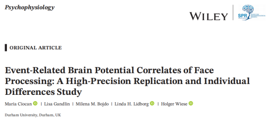 Ciocan, M., Gandlin, L., Bojdo, M. M., Lidborg, L. H., & Wiese, H. (2026). Event‐Related Brain Potential Correlates of Face Processing: A High‐Precision Replication and Individual Differences Study. Psychophysiology, 63(1), e70242.