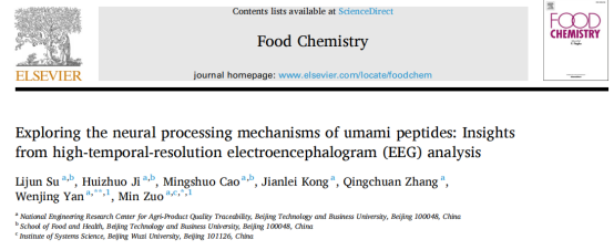 Su, L., Ji, H., Cao, M., Kong, J., Zhang, Q., Yan, W., & Zuo, M. (2026). Exploring the neural processing mechanisms of umami peptides: Insights from high-temporal-resolution electroencephalogram (EEG) analysis. Food Chemistry, 508, 148430.