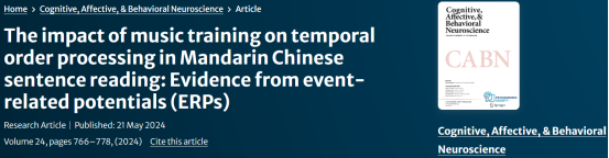 Chang, R., Zhang, Q., & Yang, X. (2024). The impact of music training on temporal order processing in Mandarin Chinese sentence reading: Evidence from event-related potentials (ERPs). Cognitive, Affective, & Behavioral Neuroscience, 24(4), 766-778.