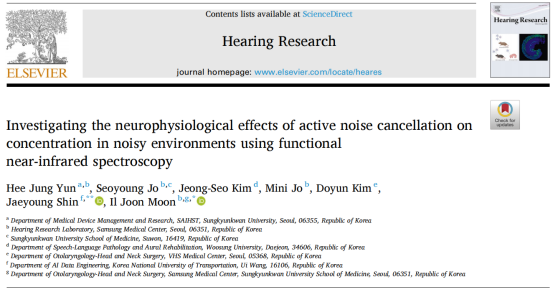 引用:Yun, H. J., Jo, S., Kim, J. S., Jo, M., Kim, D., Shin, J., & Moon, I. J. (2025). Investigating the neurophysiological effects of active noise cancellation on concentration in noisy environments using functional near-infrared spectroscopy. Hearing Research, 109408.