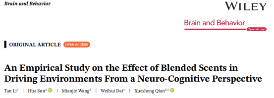 引用:Li, T., Sun, H., Wang, M., Dai, W., & Qian, X. (2024). An Empirical Study on the Effect of Blended Scents in Driving Environments From a Neuro-Cognitive Perspective. Brain and Behavior, 14(10), e70082.