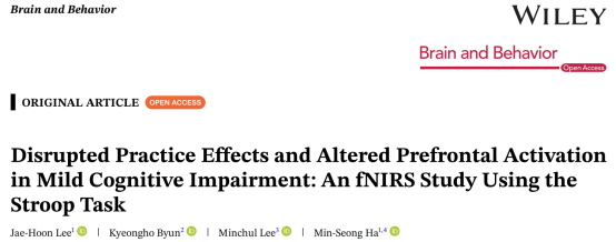 引用:Lee, J. H., Byun, K., Lee, M., & Ha, M. S. (2025). Disrupted Practice Effects and Altered Prefrontal Activation in Mild Cognitive Impairment: An fNIRS Study Using the Stroop Task. Brain and Behavior, 15(11), e70942.