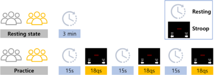 所有参与者连续完成三次stroop任务,每会话包含18个试次(一致、不一致、中性条件各6个,随机呈现)。任务全程同步采集行为反应时、正确率与前额叶氧合血红蛋白浓度变化,以评估两组在重复认知挑战中的行为表现与神经适应能力。